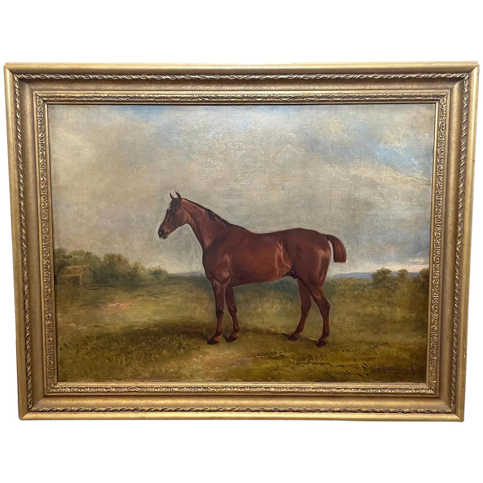 19th Century Oil Painting Chestnut Bay Hunter Horse By Claude Lorraine Ferneley