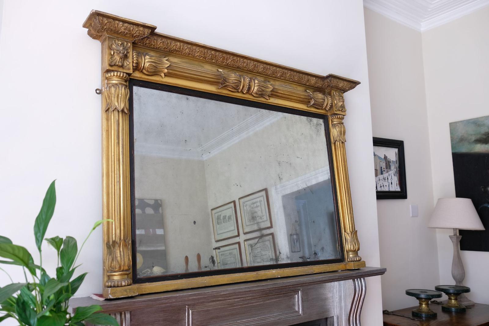 19th Century Overmantle Mirror Foxed Plate