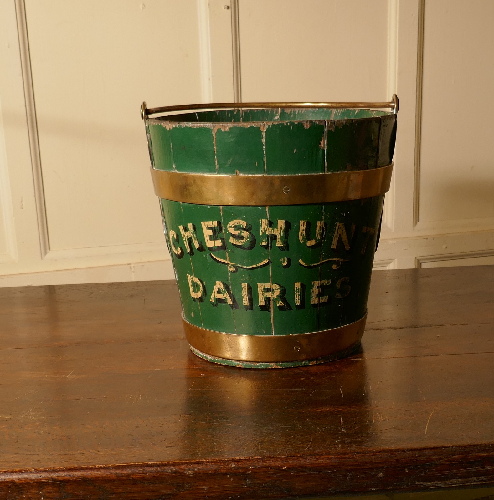 19th Century Painted & Brass Dairy Bucket or Milk Pail