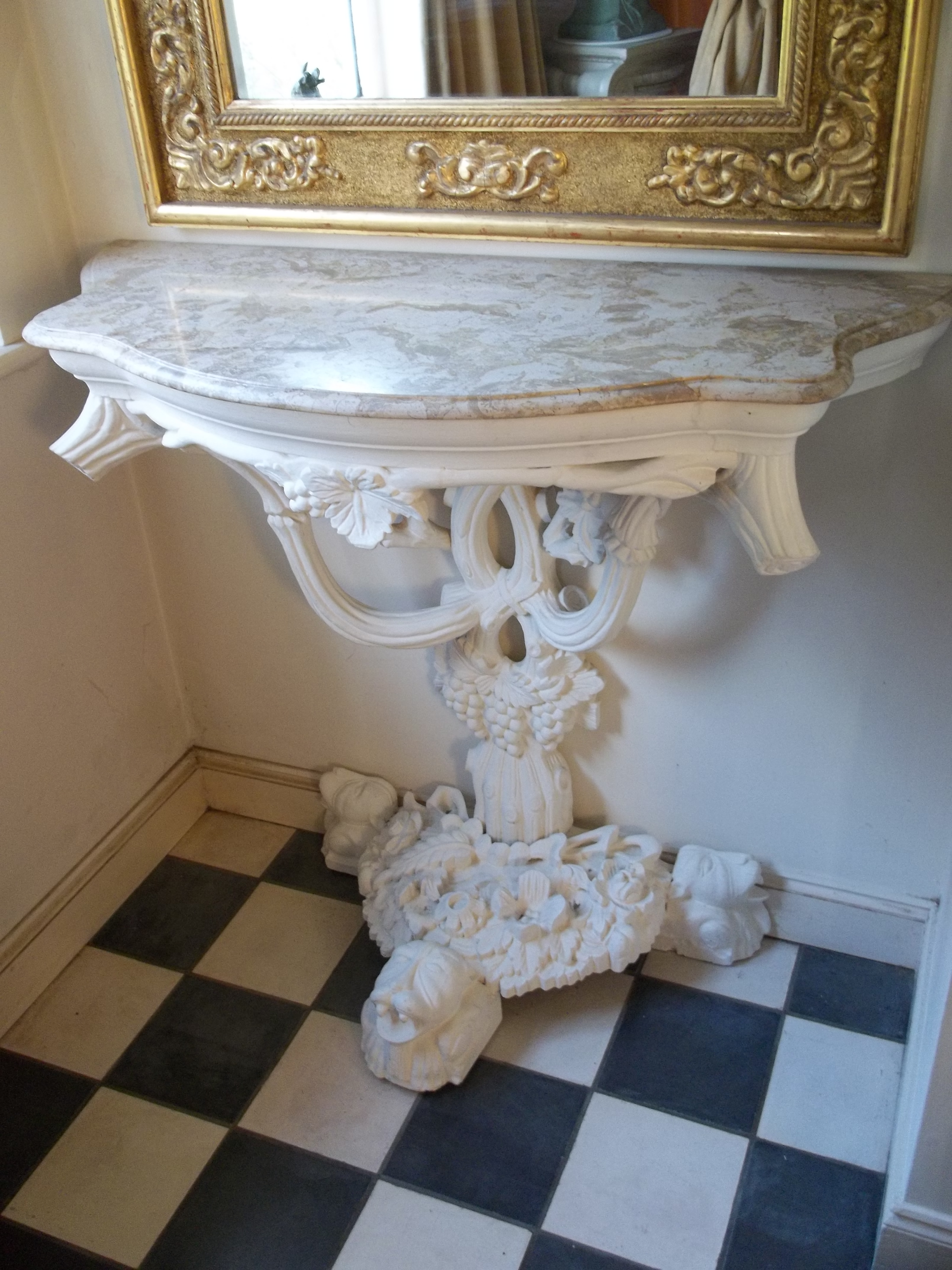 19th Century Painted Console Table with Italian Marble Serpentine Top c.1880