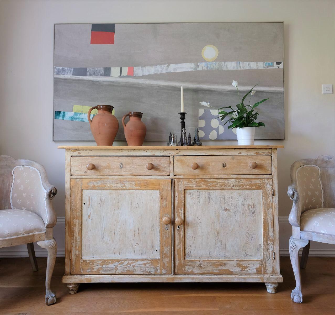 19th Century Painted Pine Cupboard with Two Drawers