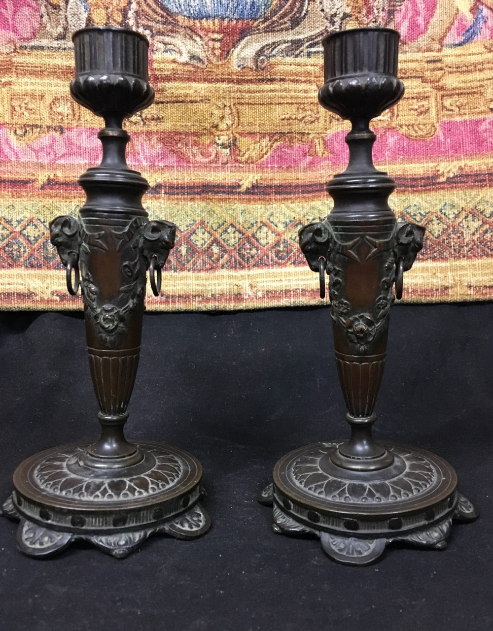 19th Century Pair of Bronze Candlesticks in the Manner of Thomas Hope (1 of 6)