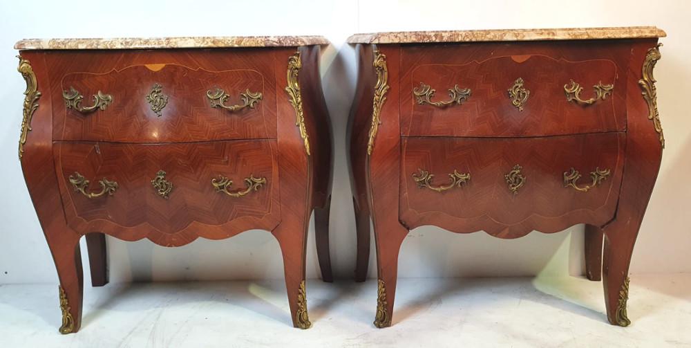 19th Century Pair of Inlaid Kingwood Marble Top Chests