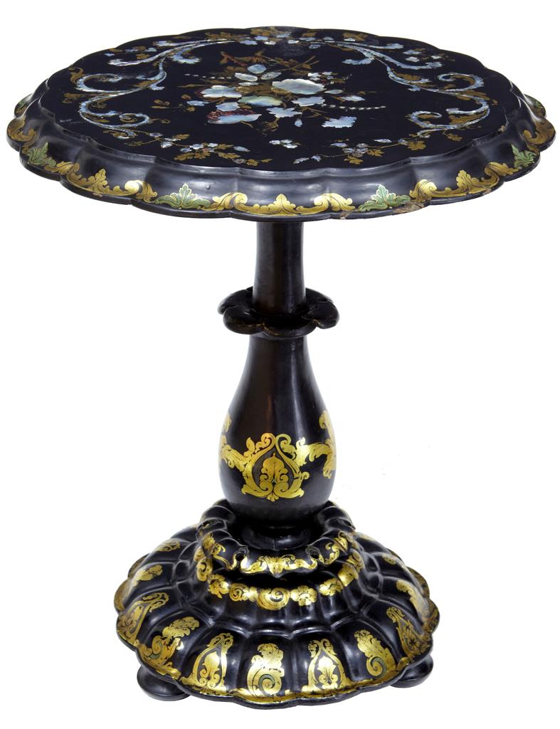 19th Century Papier Mache Mother of Pearl Tilt Top Occasional Table c.1890 (1 of 1)
