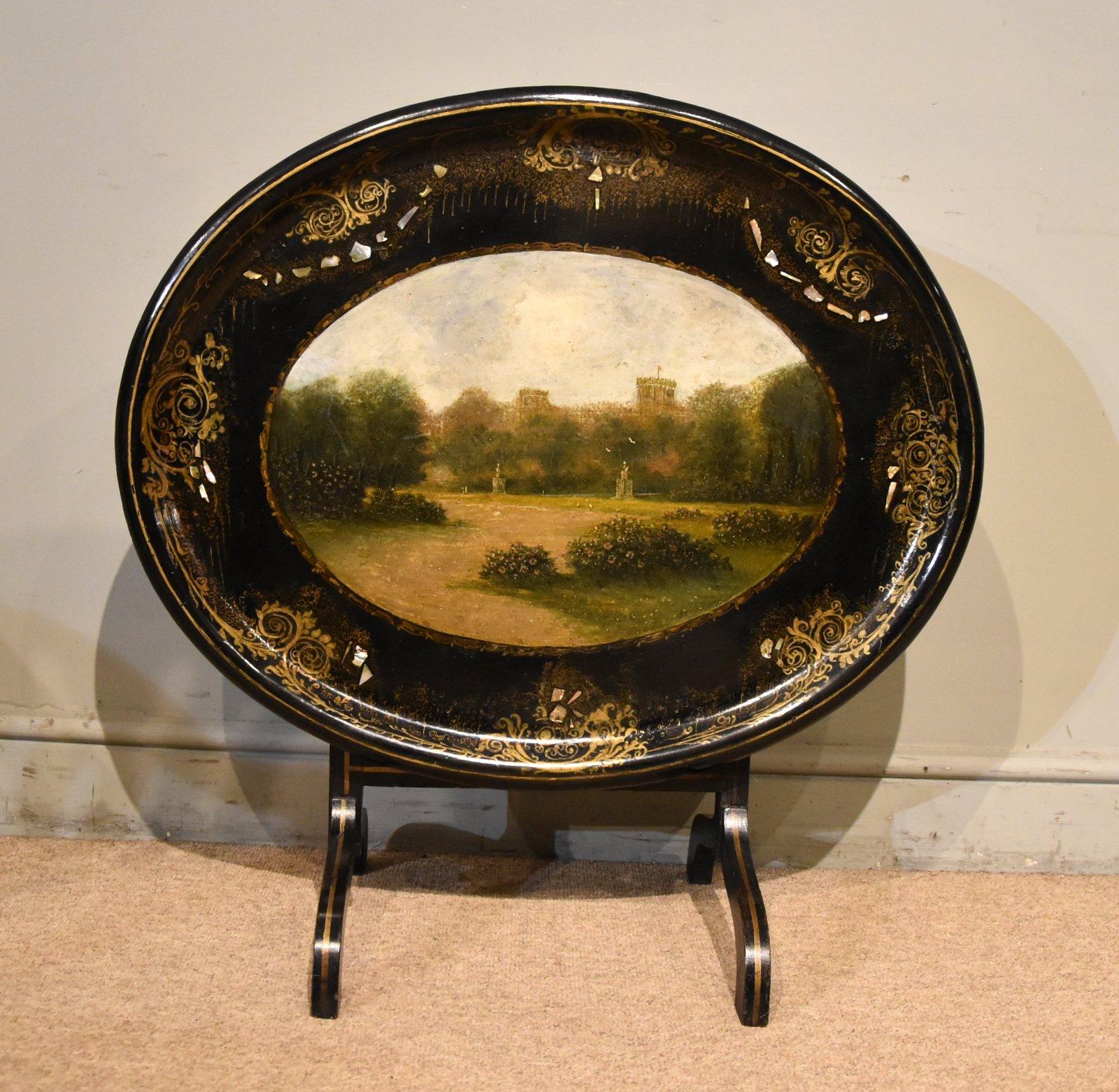 19th Century Papier Mache Oval Tray on Modern Stand (1 of 8)