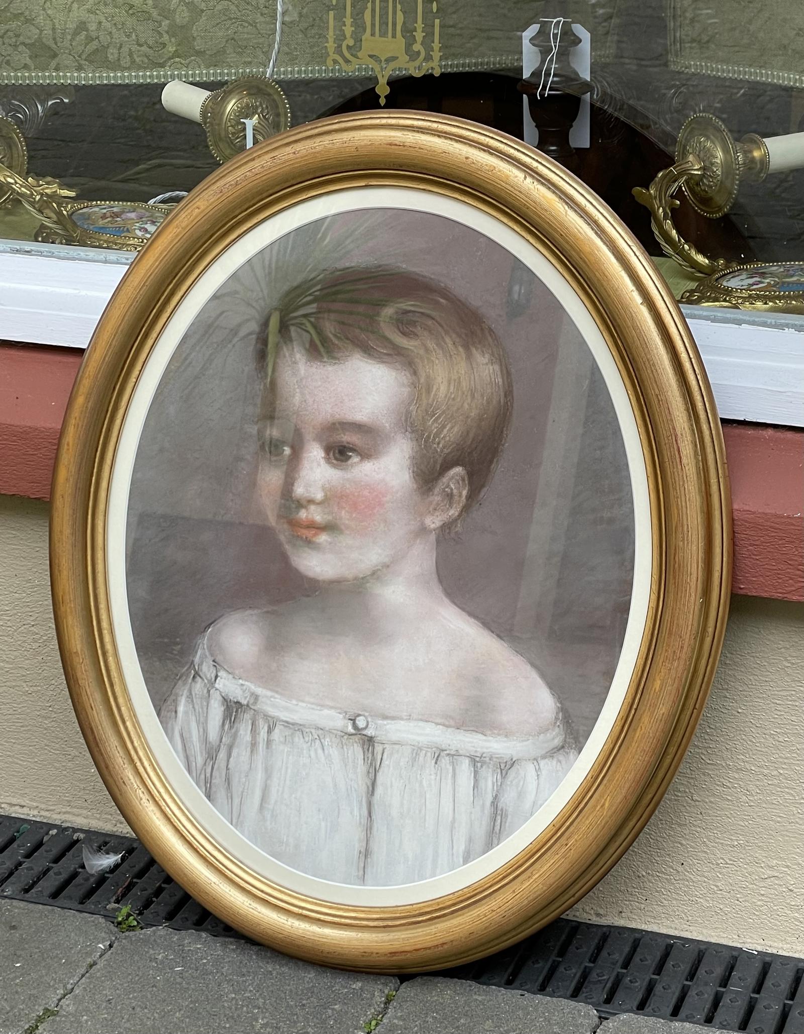 19th Century Pastel Painting Portrait of Young Girl