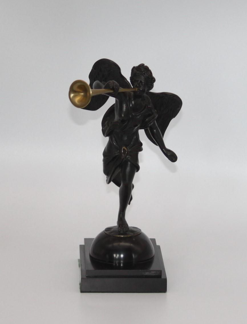 19th Century Patinated Bronze Herald on Polished Slate Base