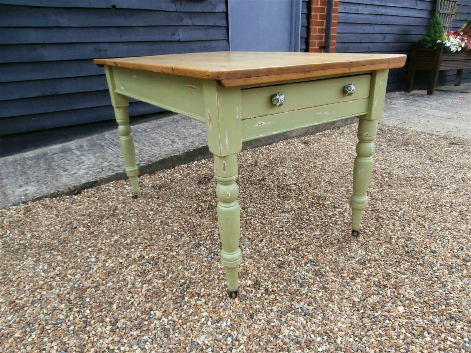 19th Century Pine Farmhouse Kitchen Table Annie Sloan Painted Distressed