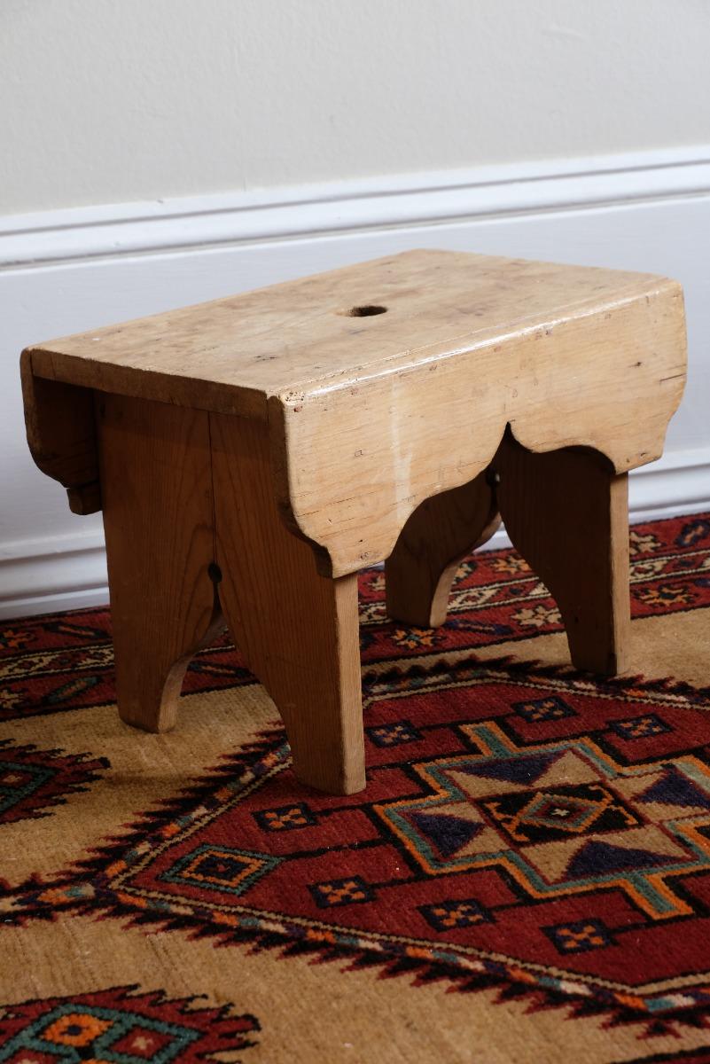 19th Century Pine Stool With Fretwork Skirts & Legs