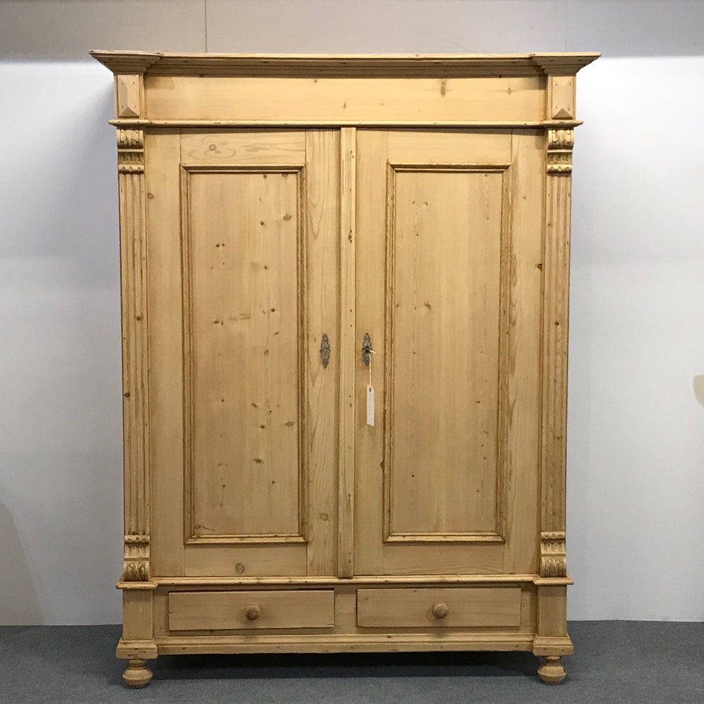 19th Century Pine Wardrobe with Drawers