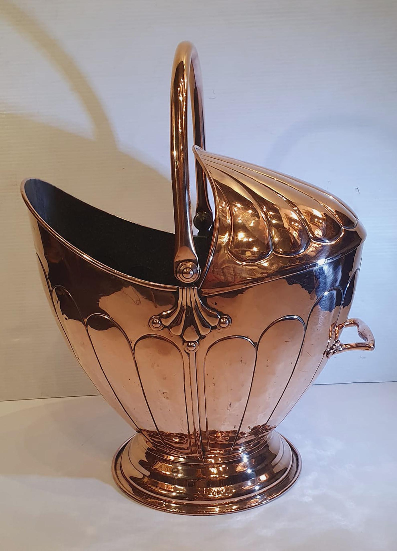 19th Century Polished Copper Helmet Coal Scuttle