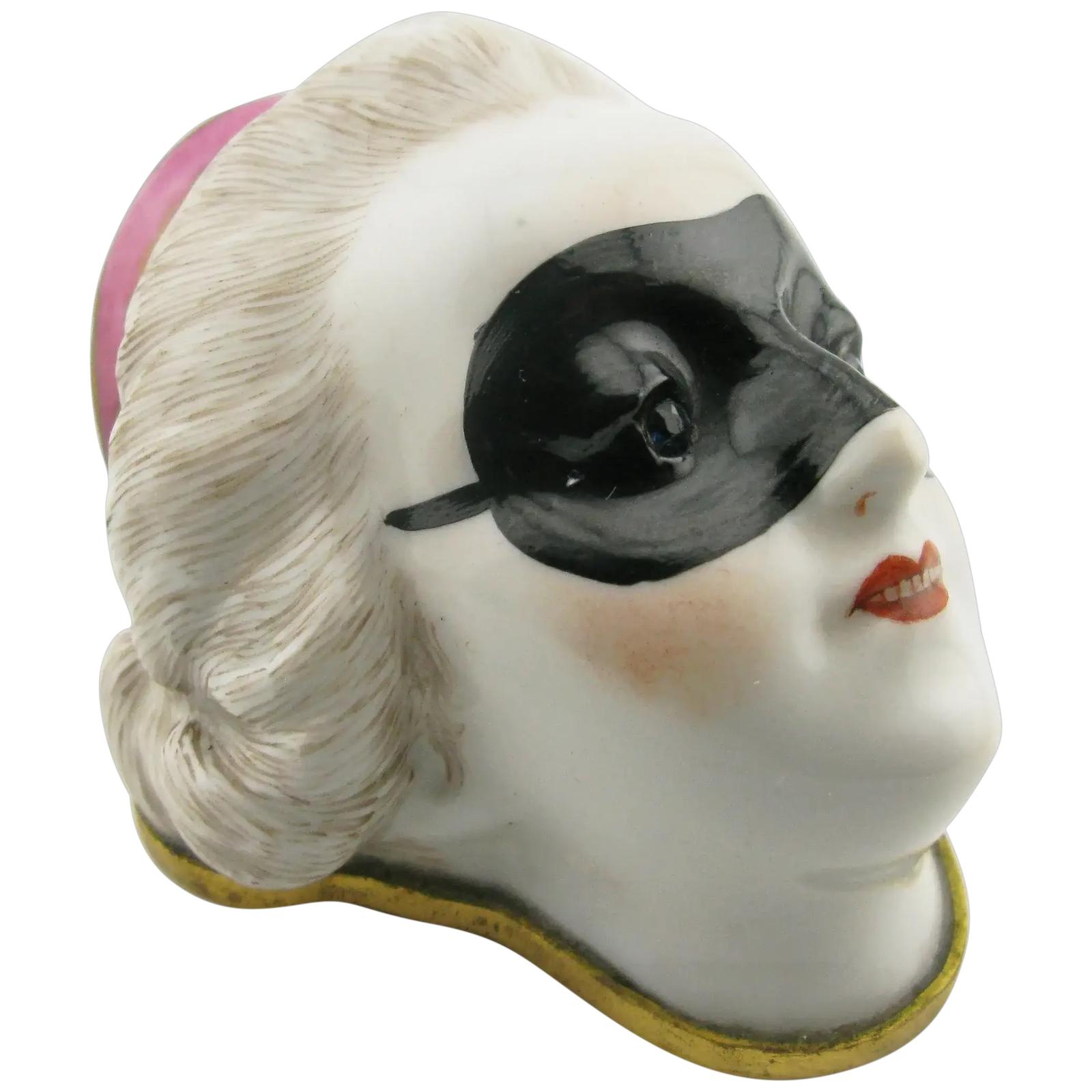 19th Century Porcelain Bonbonniere or Patch Box of Masked Lady
