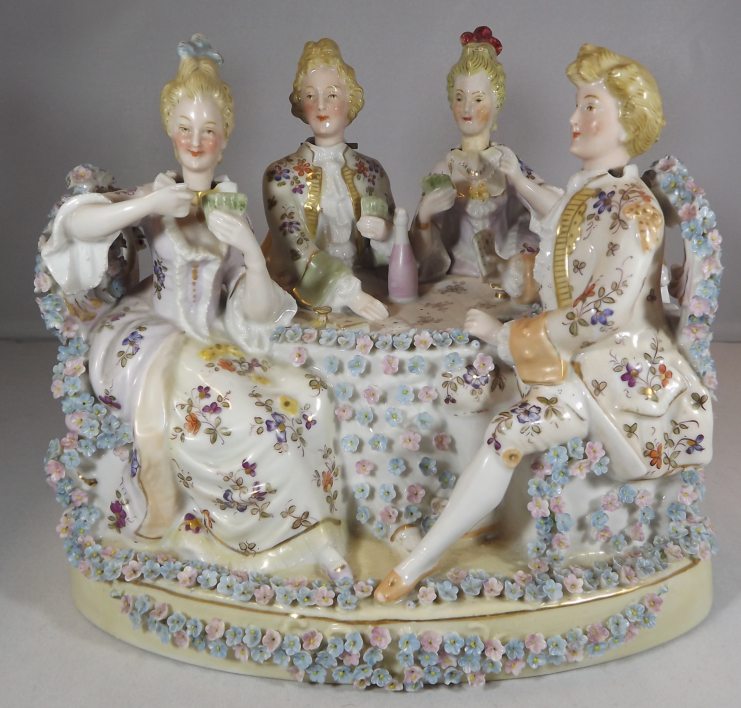 19th Century Porcelain Quadruple Nodder Court Tableau