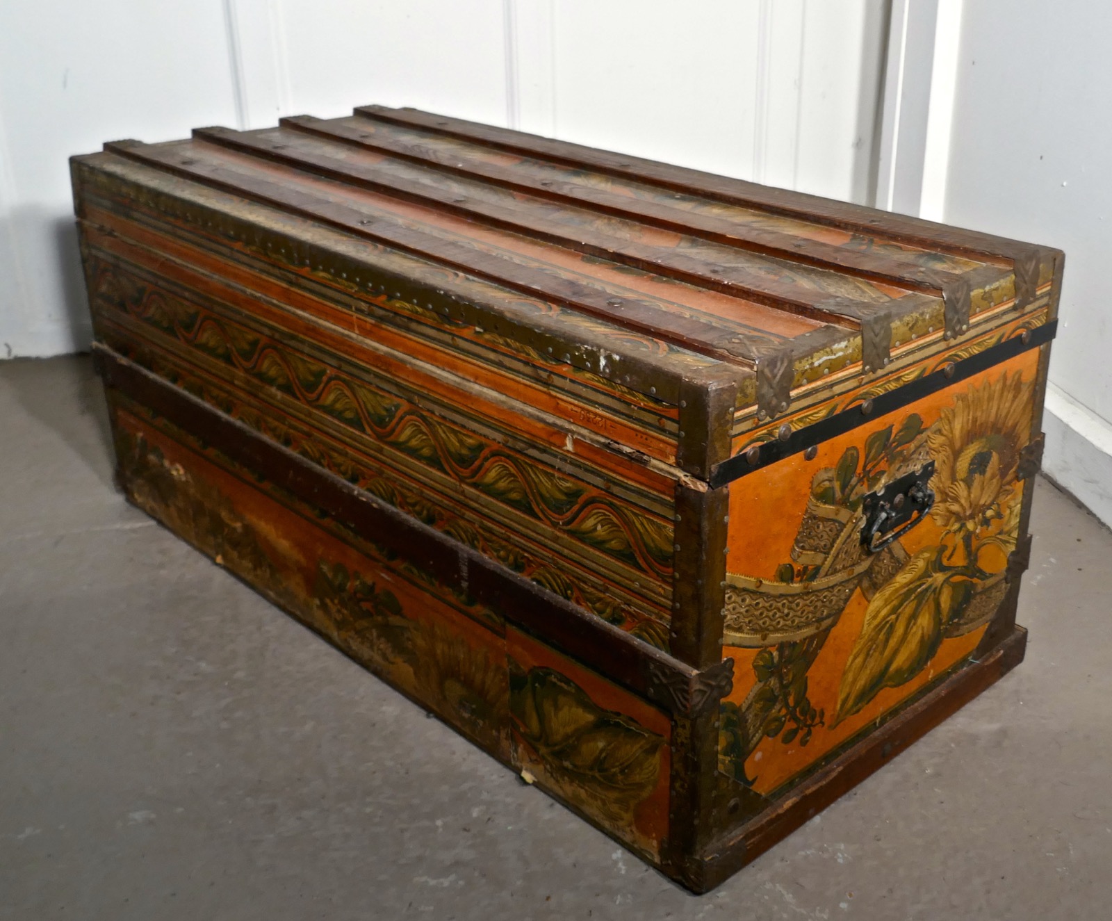 19th Century Portuguese Vintage Travel Chest or Steamer Trunk,