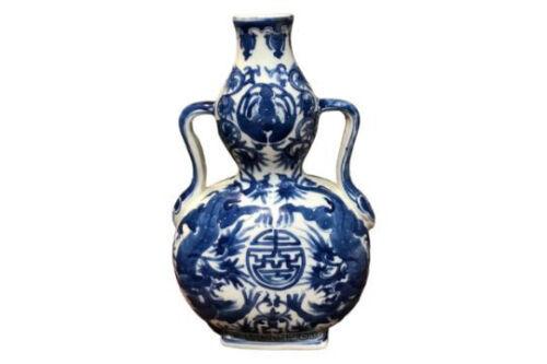 19th Century Qing Dynasty Chinese Blue & White Baoyueping Moon Flask