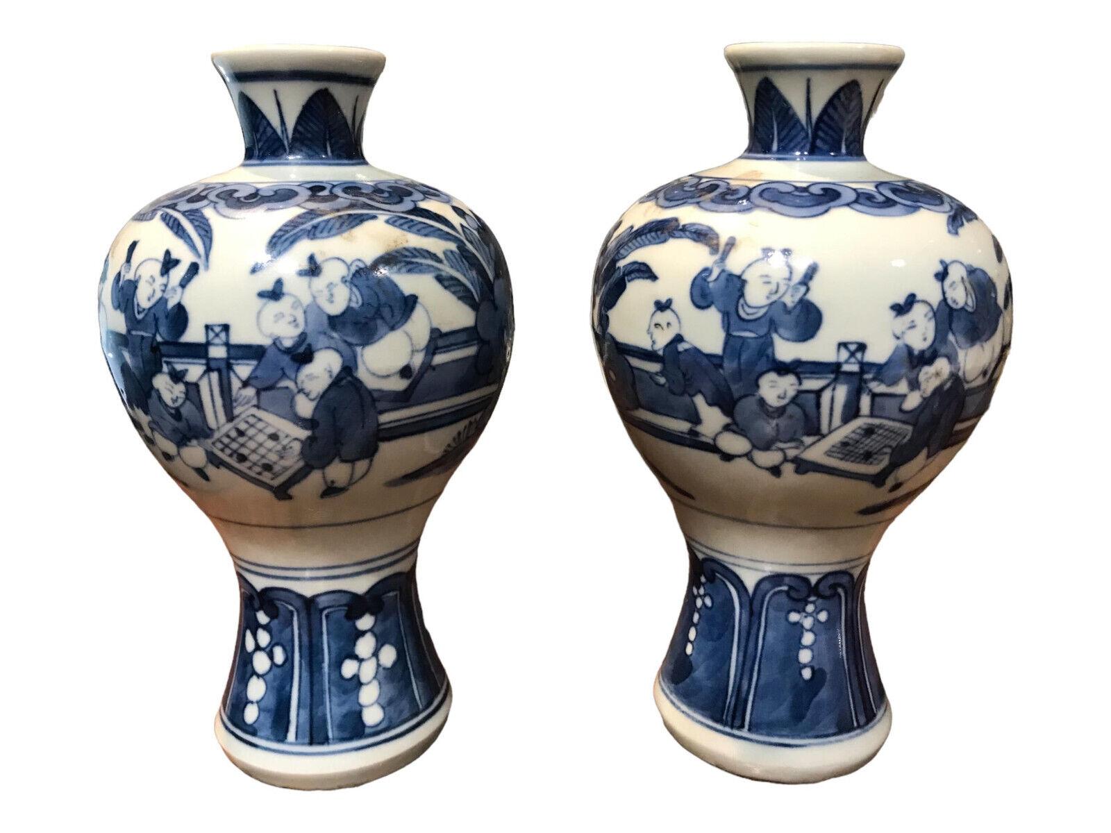 19th Century Qing Dynasty Chinese Blue & White Decorated Meiping Vases