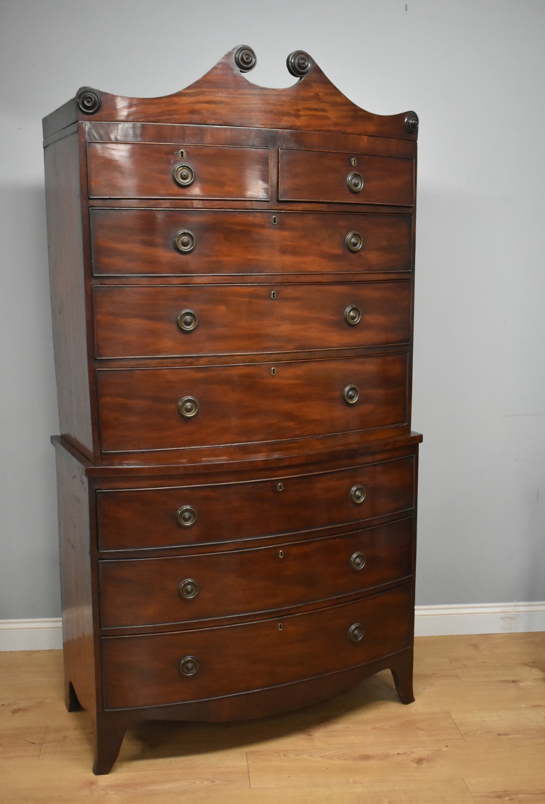 19th Century Regency Mahogany Bow Front Chest on Chest