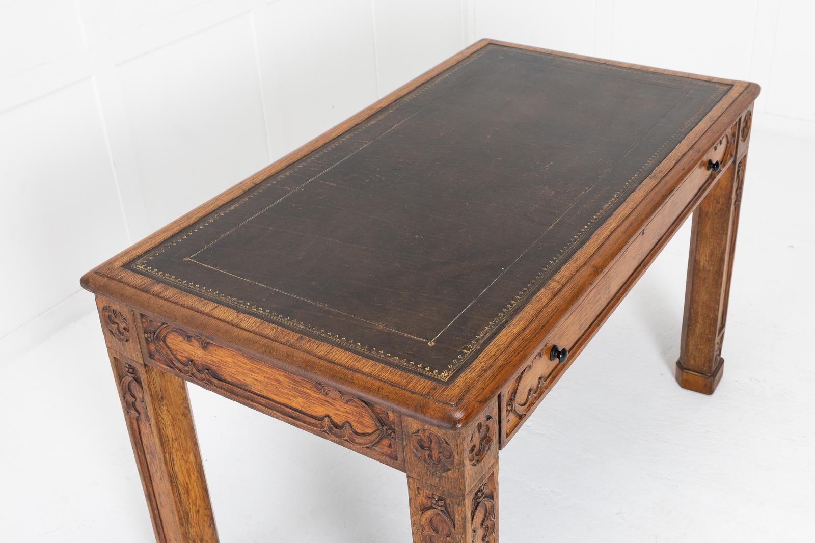 19th Century Regency Oak Gothic Desk with Leather Top