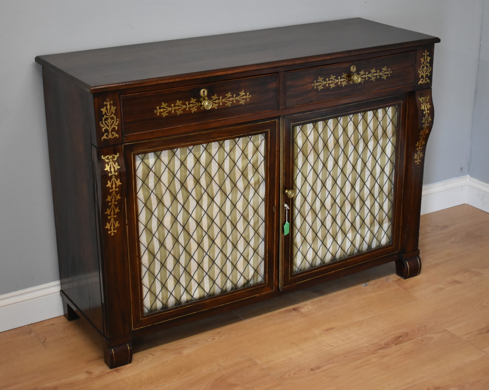 19th Century Regency Rosewood & Brass Inlaid Bookcase