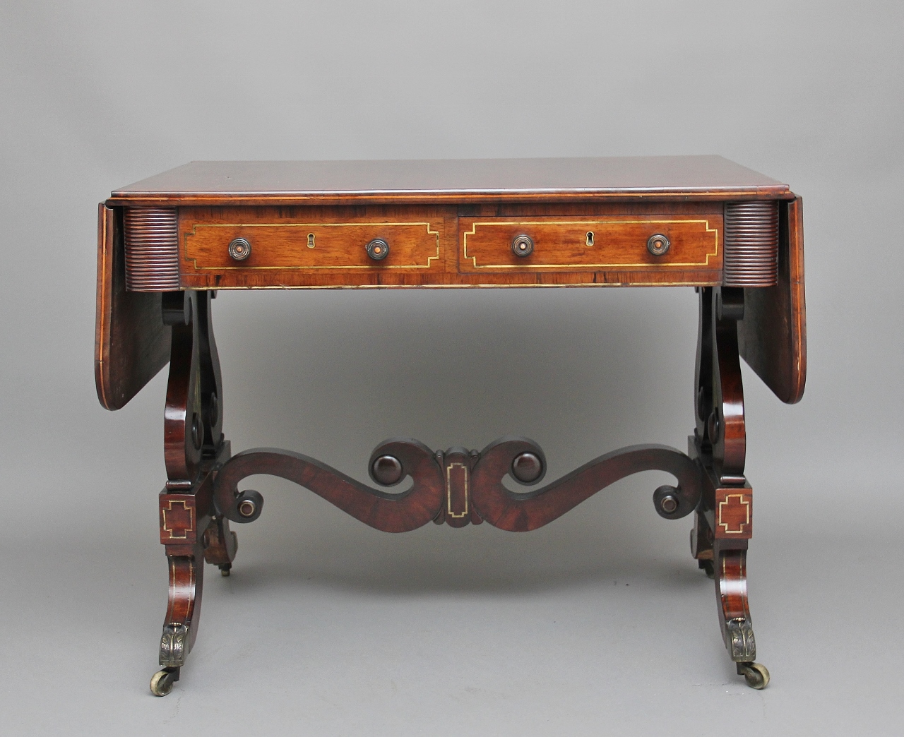 19th Century Rosewood & Brass Inlaid Sofa Table c.1820