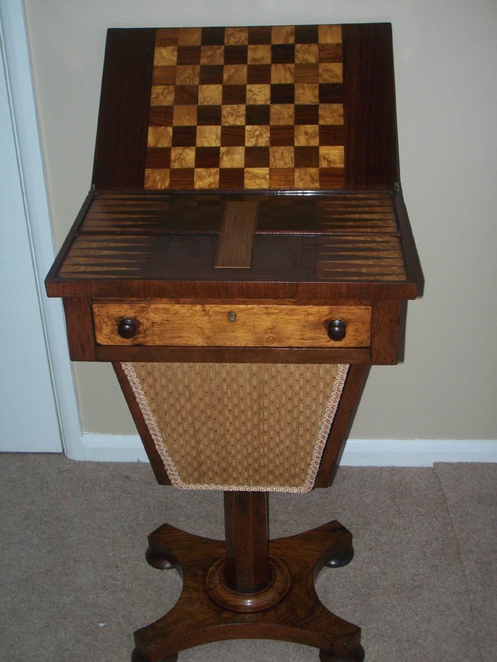 19th Century Rosewood Games / Chess / Backgammon / Cribbage / Sewing Table