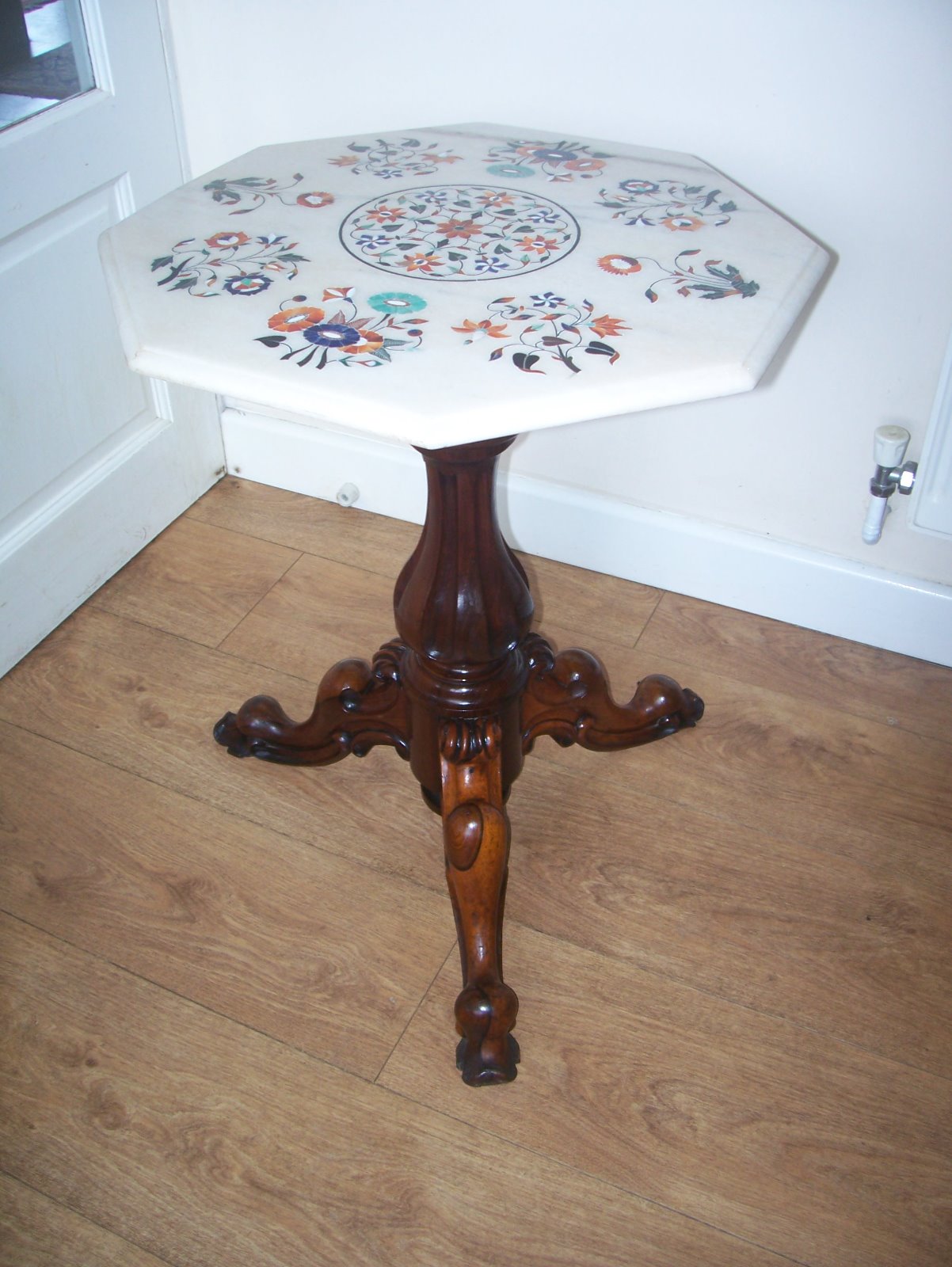 19th Century Rosewood & Pietra Dura Marble Top Occasional Wine Table (1 of 1)