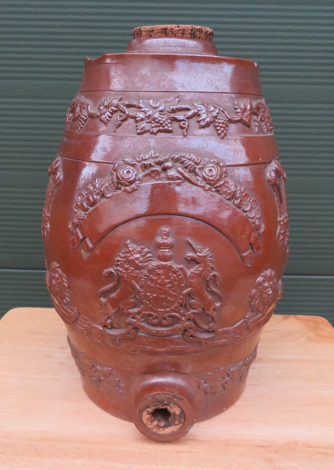 19th Century Salt-Glazed Stoneware 2 Gallon Spirits Barrel