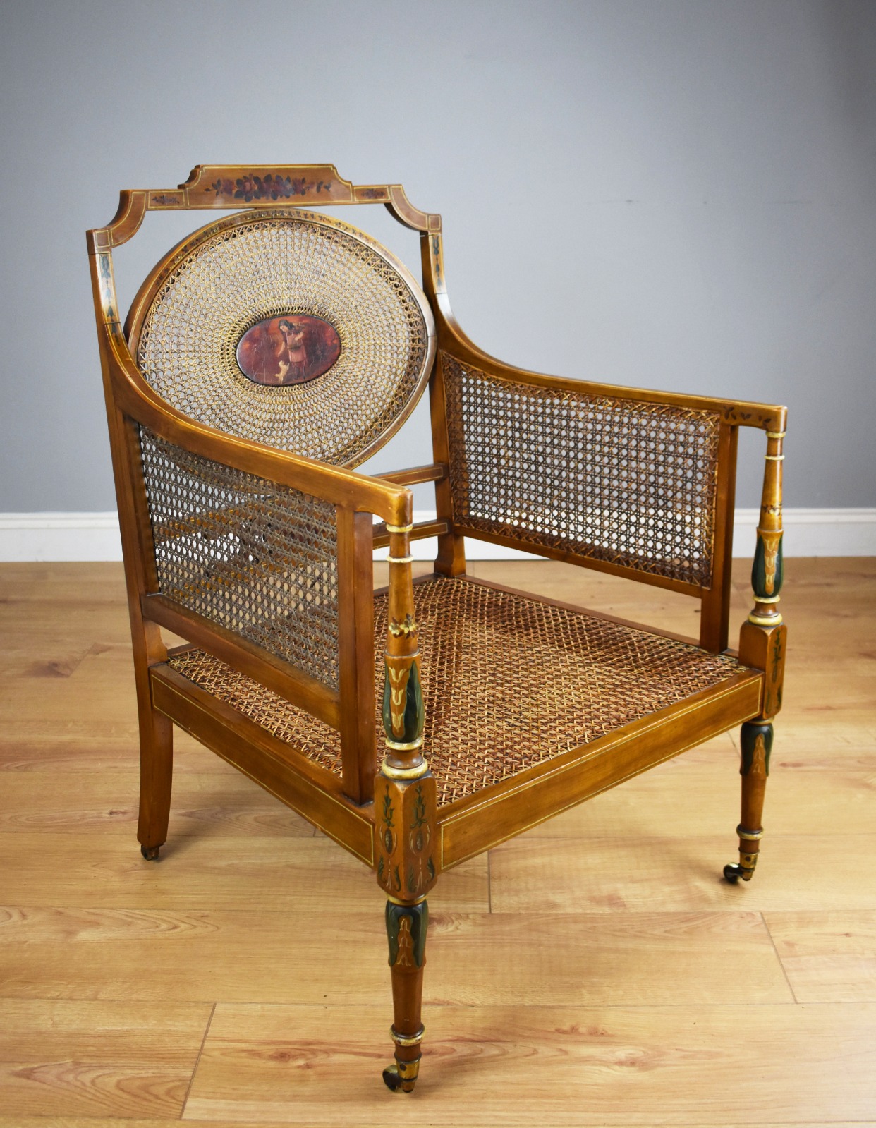 19th Century Satin Birch Cane Armchair by Howard & Sons