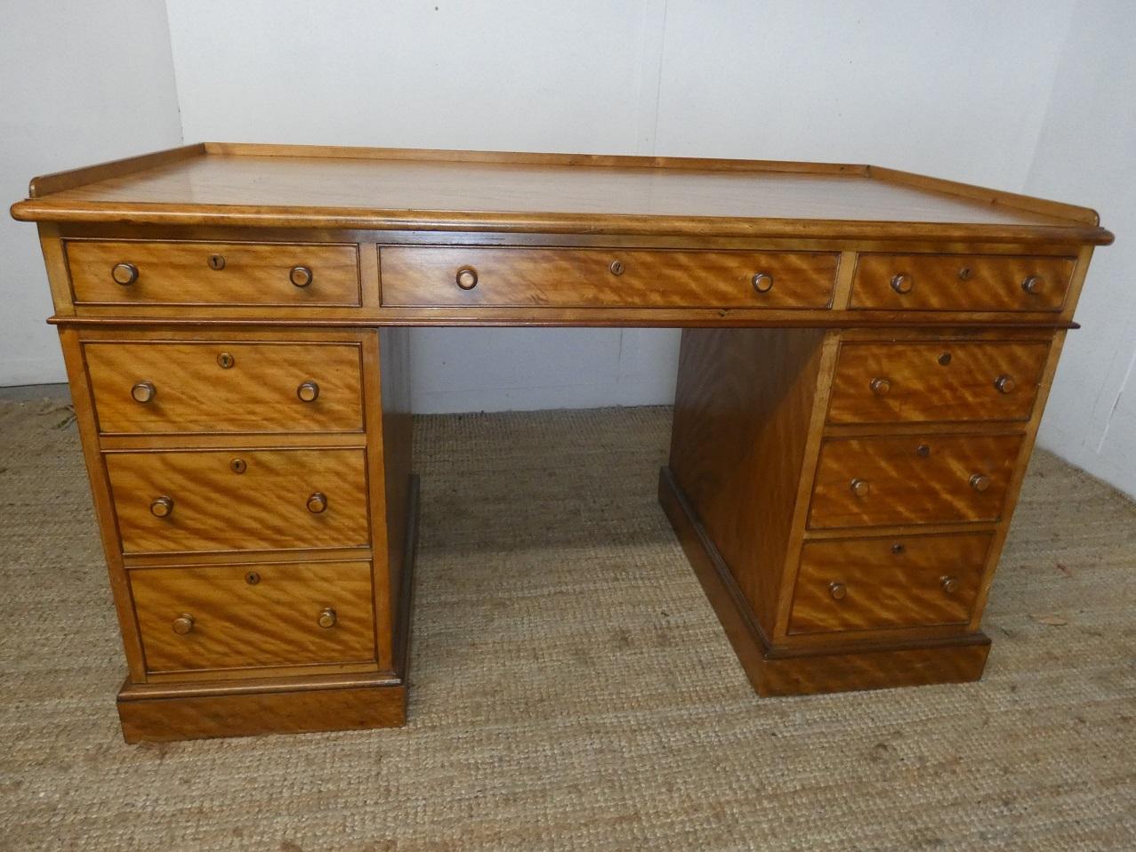 19th Century Satin Birch Kneehole Desk (1 of 13)