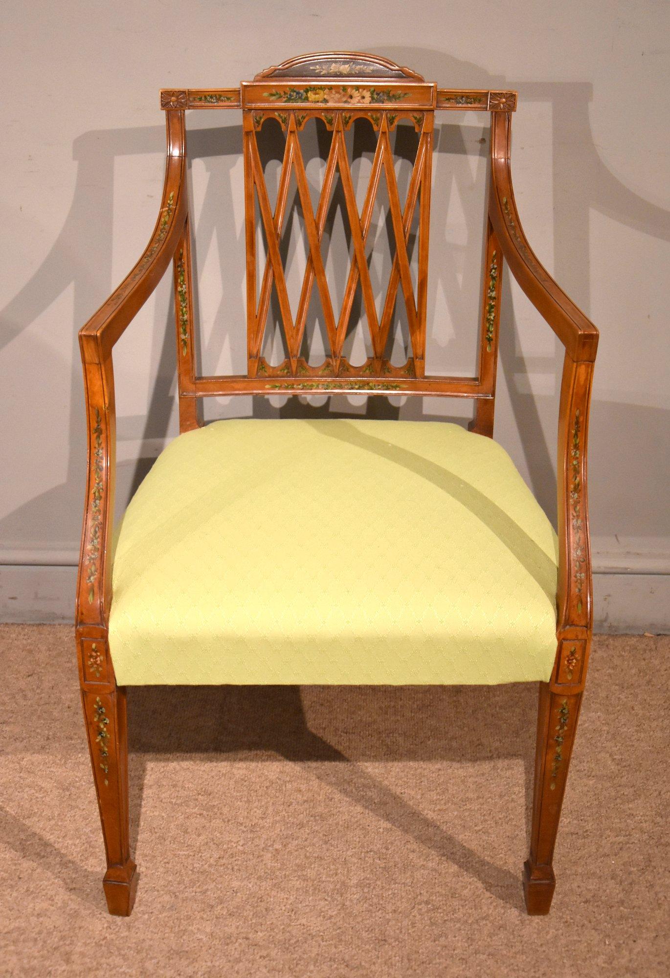 19th Century Satinwood & Hand Painted Armchair S & H Jewell