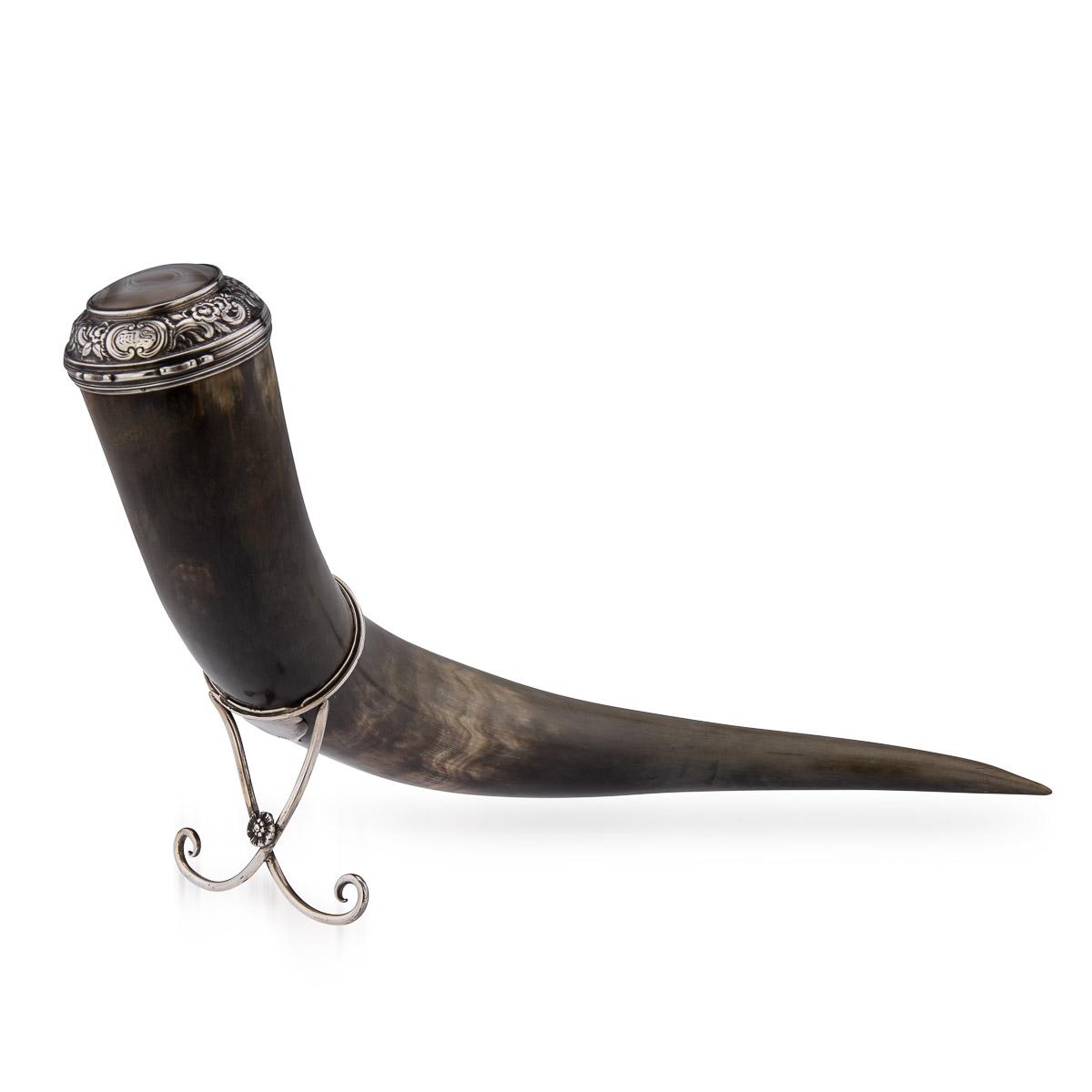 19th Century Scottish Horn, Banded Agate & Solid Silver Table Snuff Mull c.1870