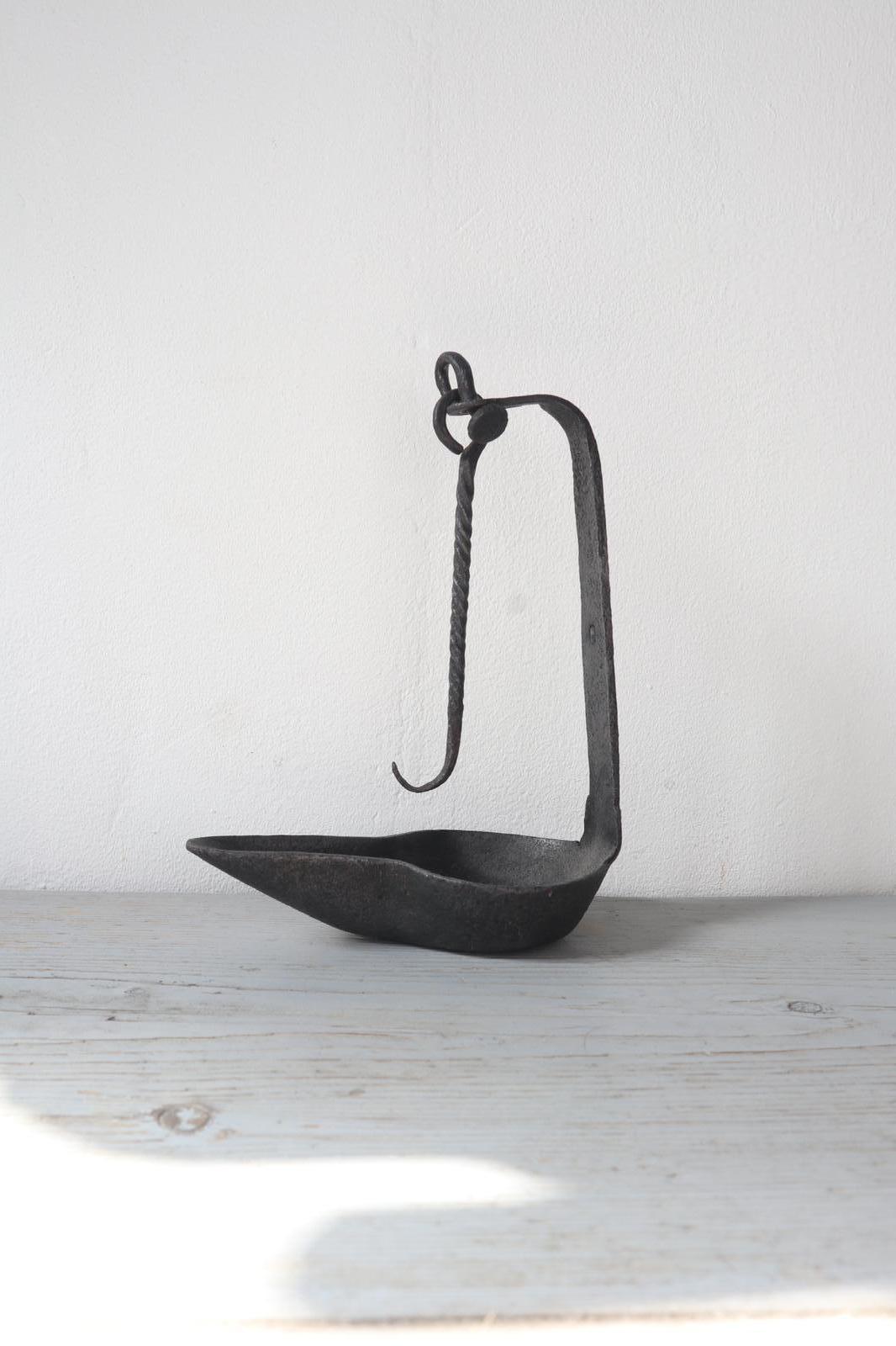 19th Century Scottish / Orkney Isles Wrought Iron Hanging 'Cruisie' Oil Lamp