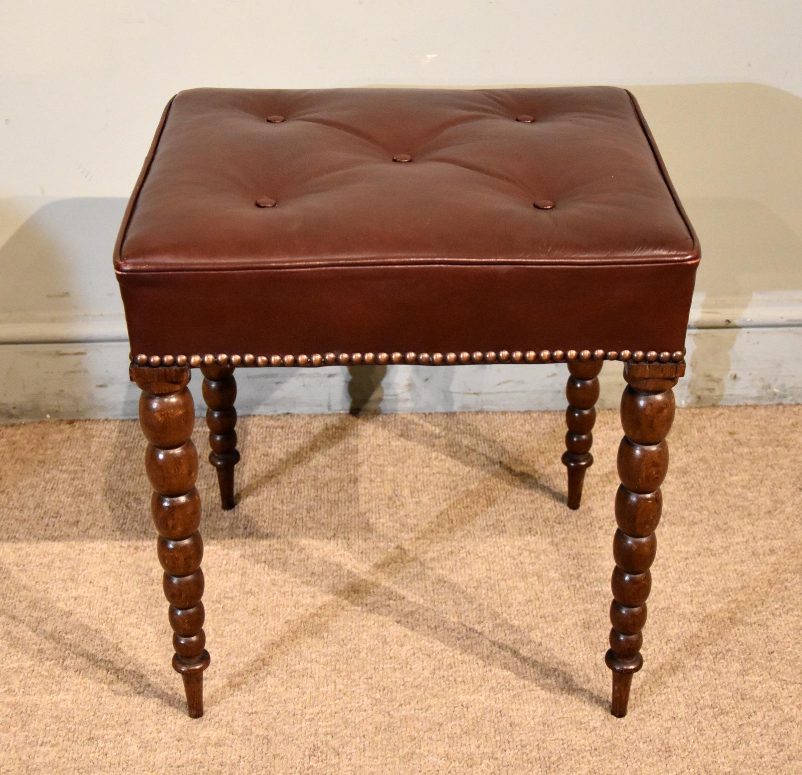 19th Century Scottish Rosewood Leather Footstool