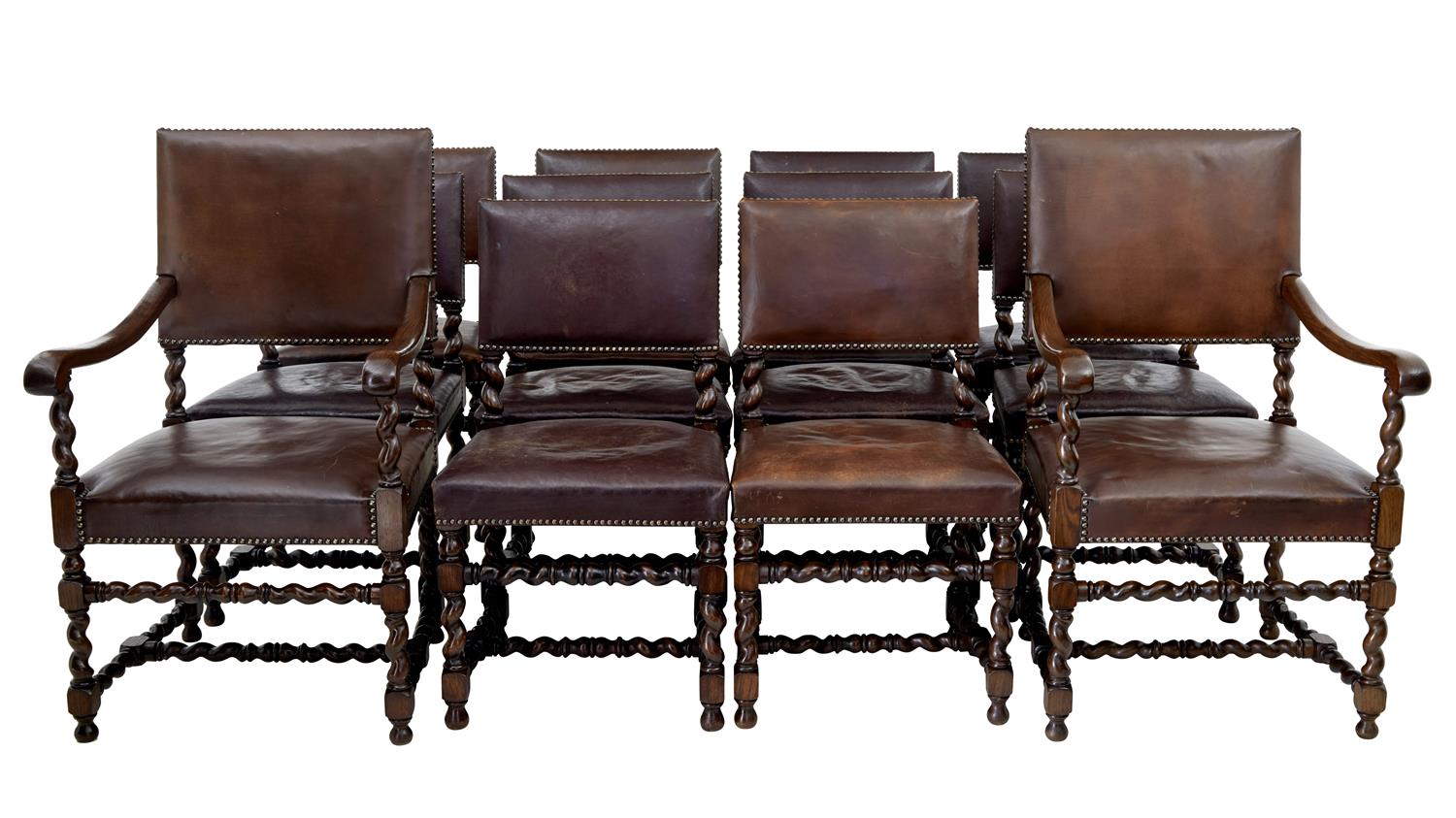 19th Century Set of 10+2 Cromwellian Inspired Oak Dining Chairs