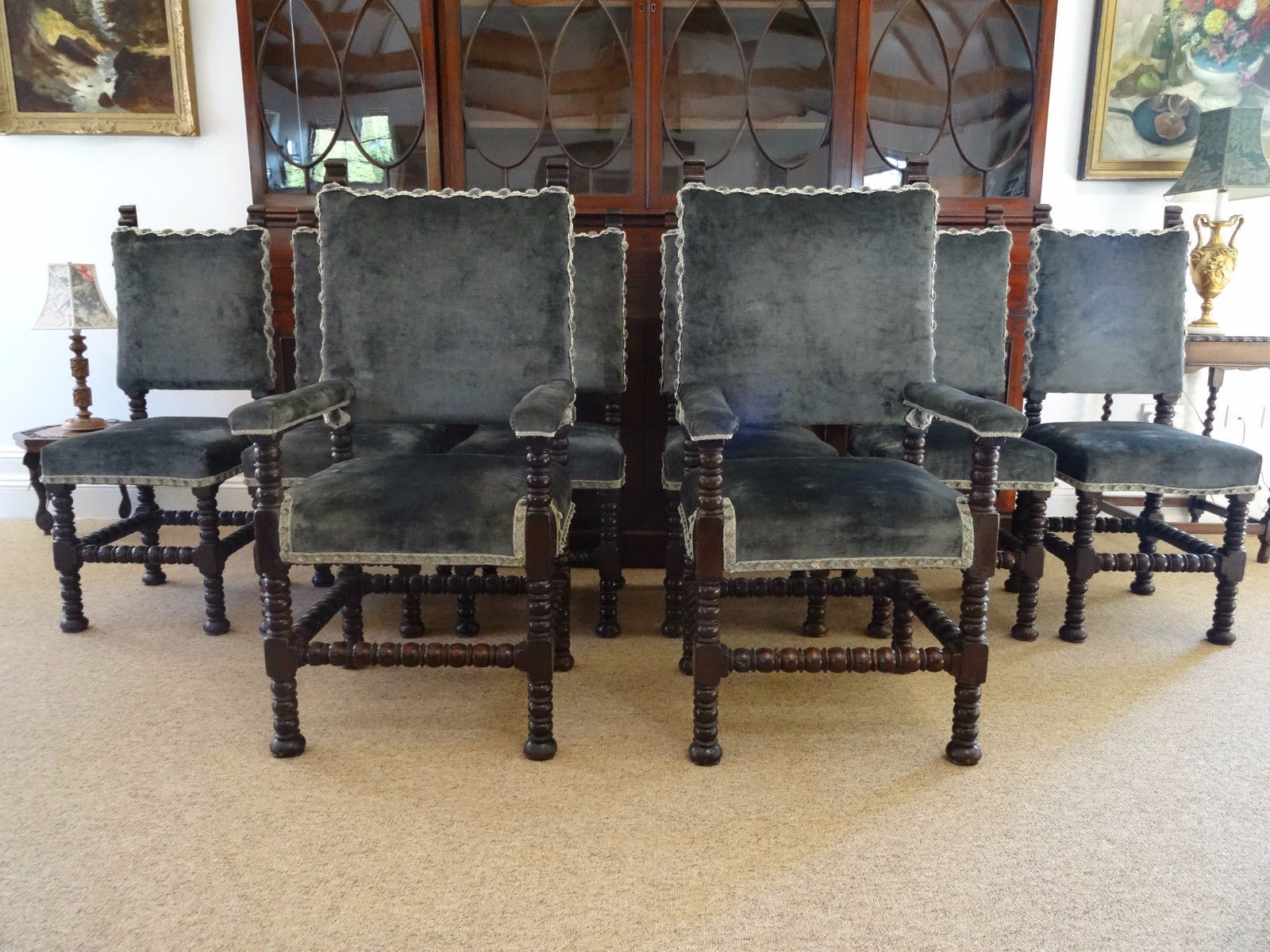 19th Century Set of 8 Carolean Oak Upholstered Dining Chairs (Inc. 2 Cravers)