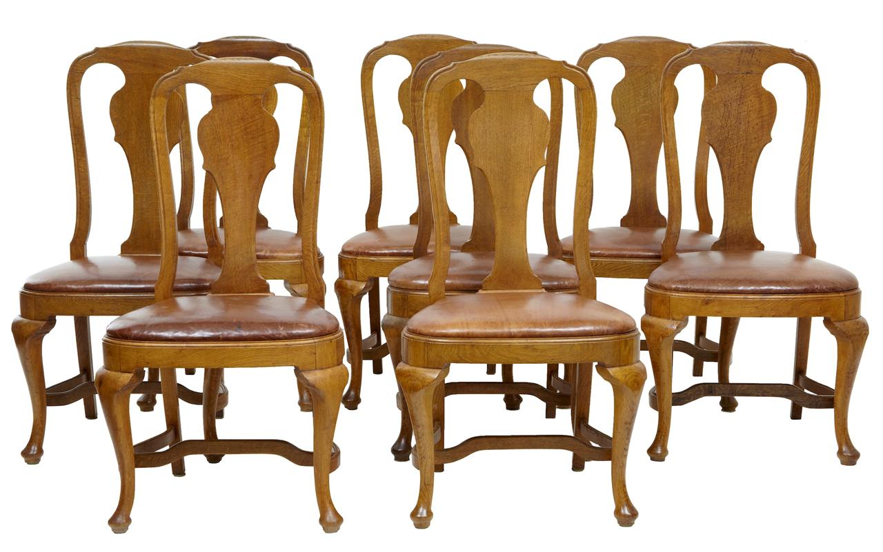 19th Century Set of 8 Queen Anne Influenced Oak Dining Chairs c.1890 (1 of 1)