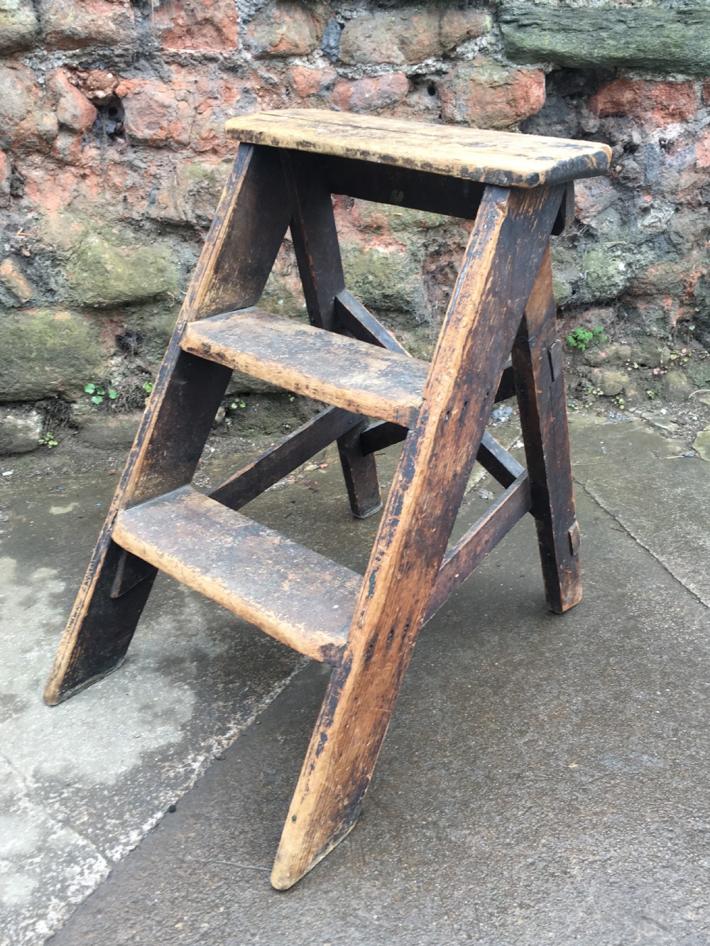 19th Century Set of Stained Pine Library Steps (1 of 1)