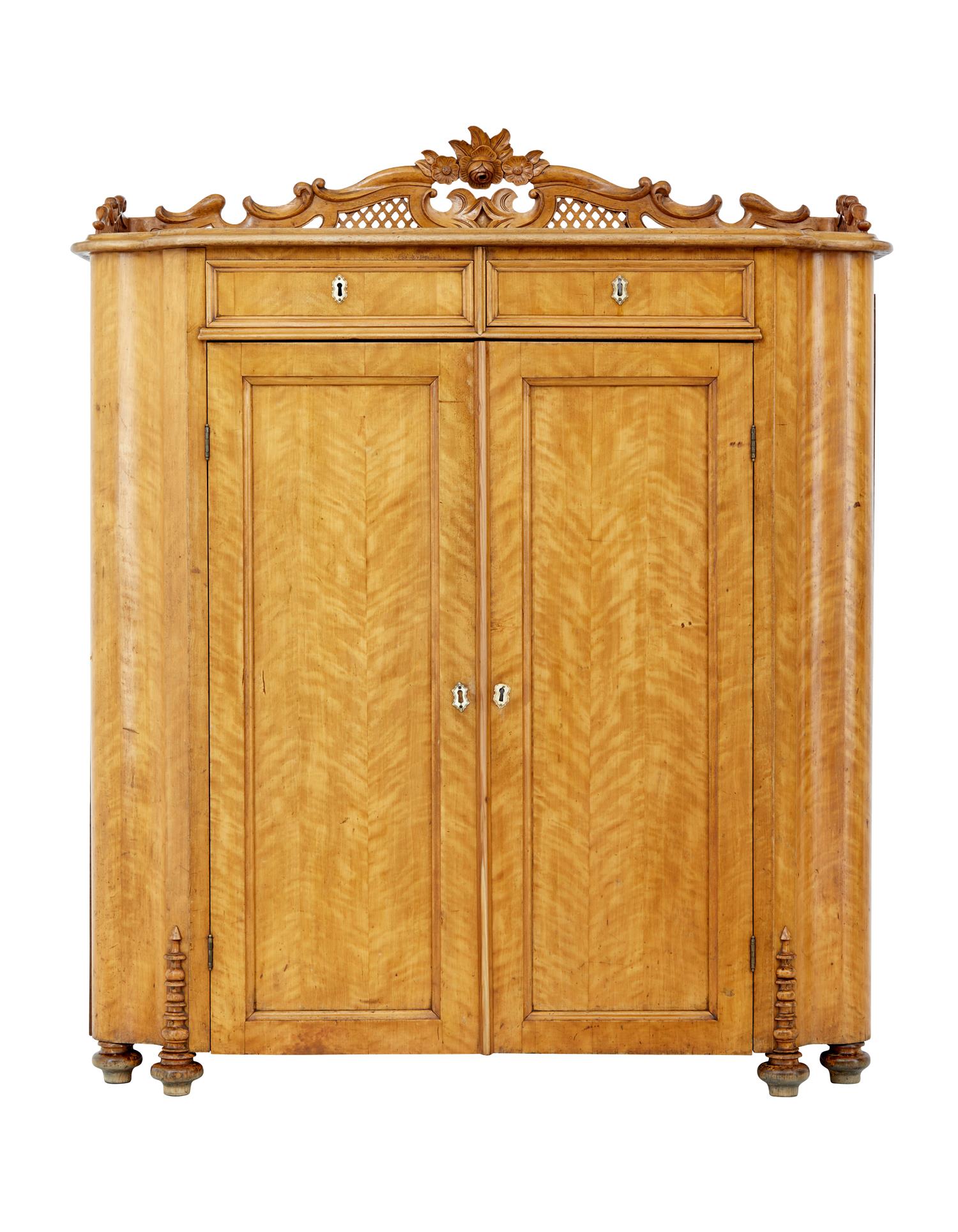 19th Century Shaped Swedish Carved Birch Cupboard (1 of 8)