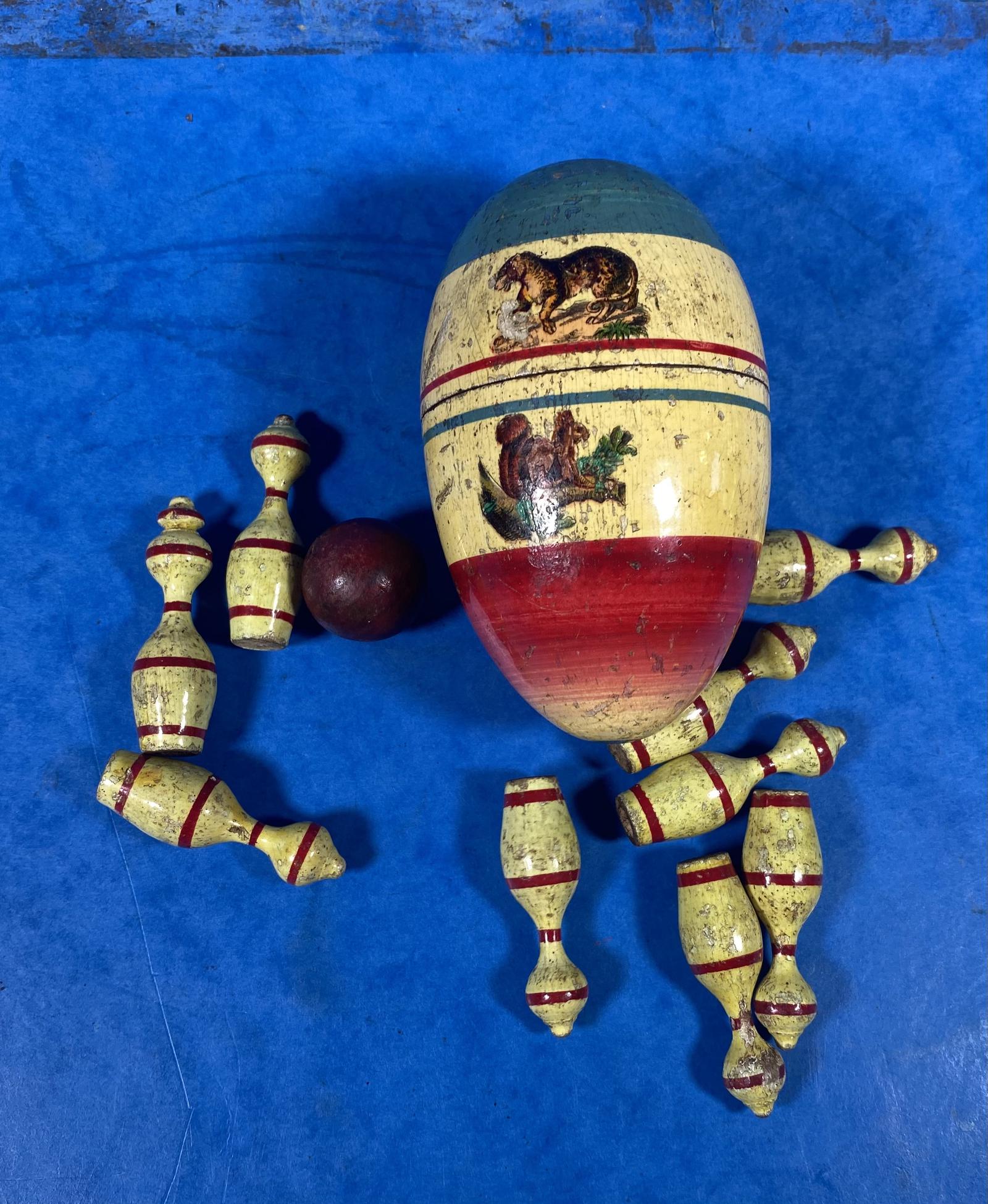 19th Century Skittles Game in Tunbridge Ware White Wood Painted Egg