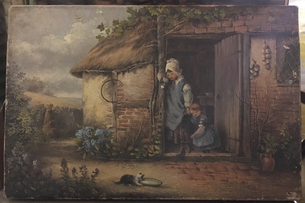 19th Century Small Oil Painting on Canvas of a Farmyard Scene (1 of 1)
