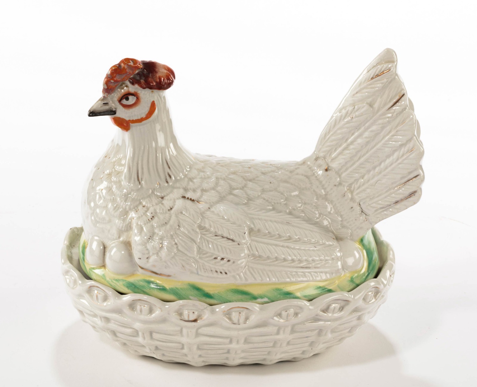 19th Century Staffordshire Hen Basket with Enameled Decoration