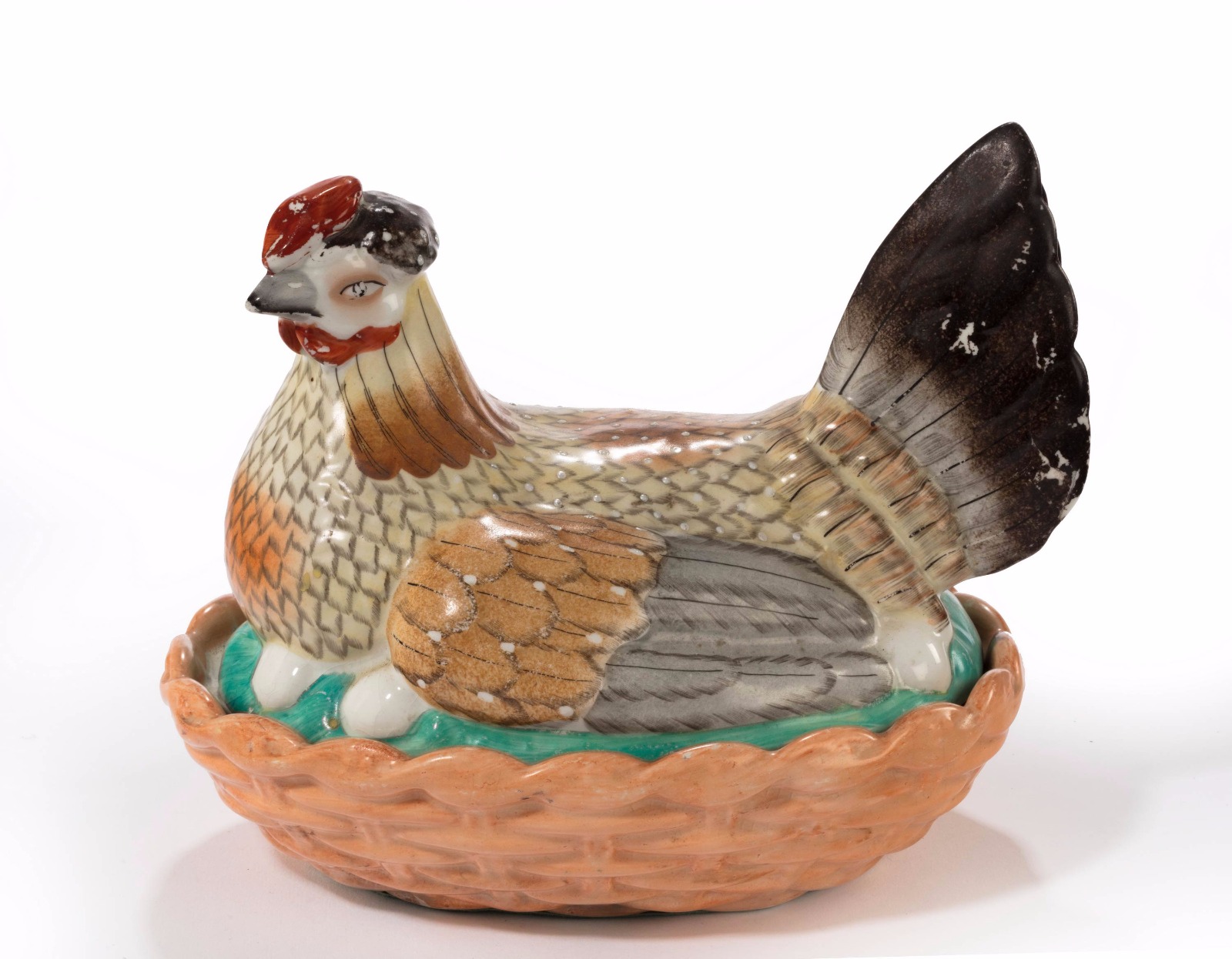 19th Century Staffordshire Highly Coloured Hen Basket