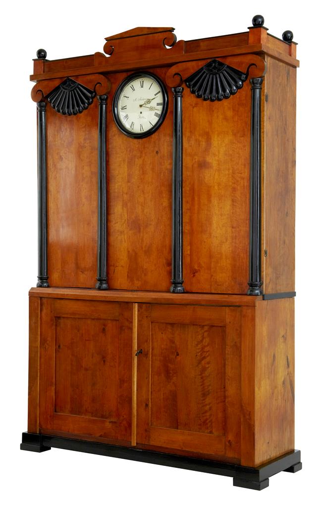 19th Century Swedish Birch Art Nouveau Cabinet with Clock c.1890 (1 of 1)