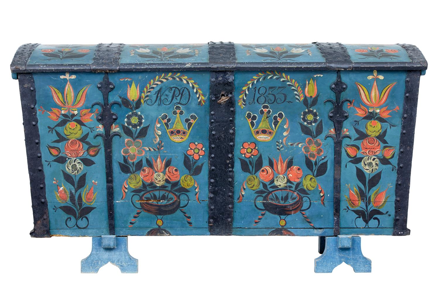 19th Century Swedish Oak Hand Painted Dome Top Trunk (1 of 1)