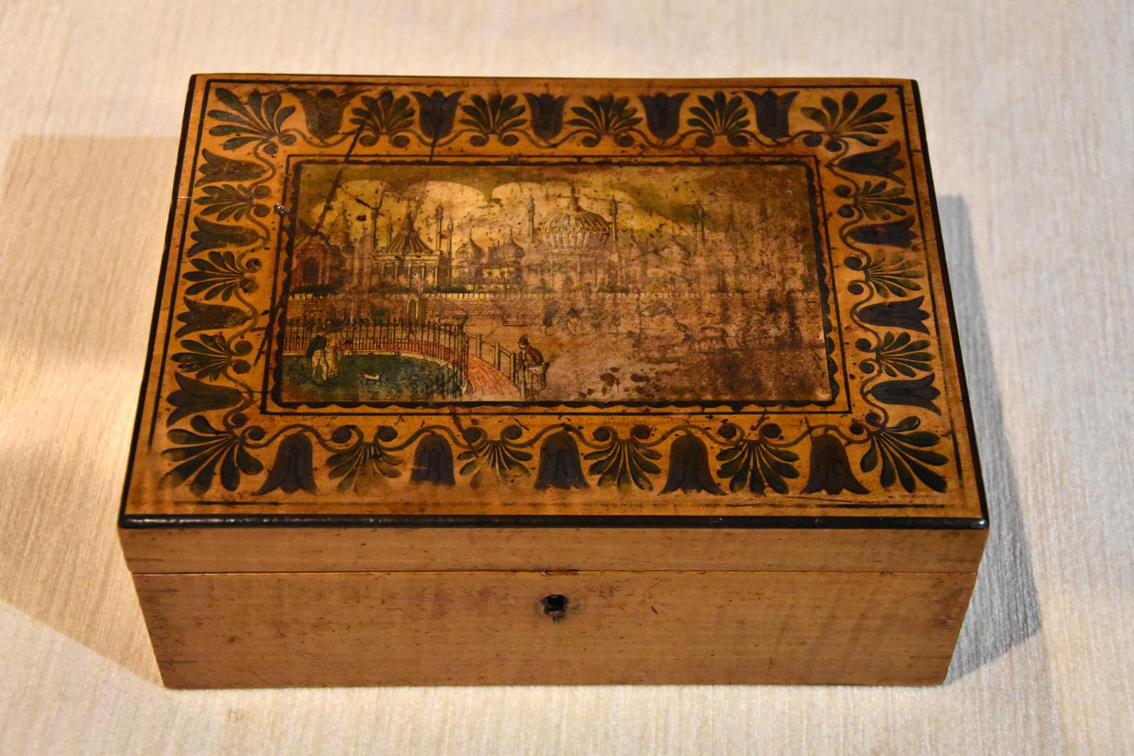 Offered for sale is this early 19th century antique Tunbridge Ware box with an image of Brighton Pavilion in sycamore wood.