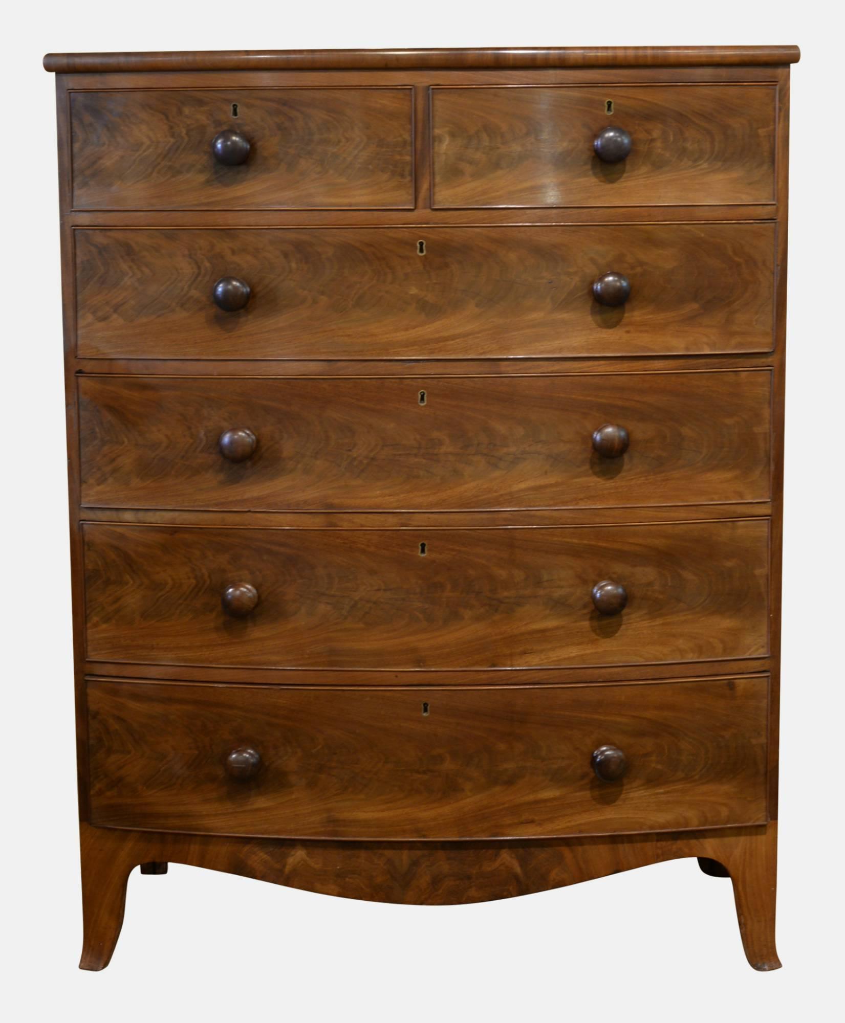 19th Century Tall Mahogany Bow Chest of Drawers (1 of 1)