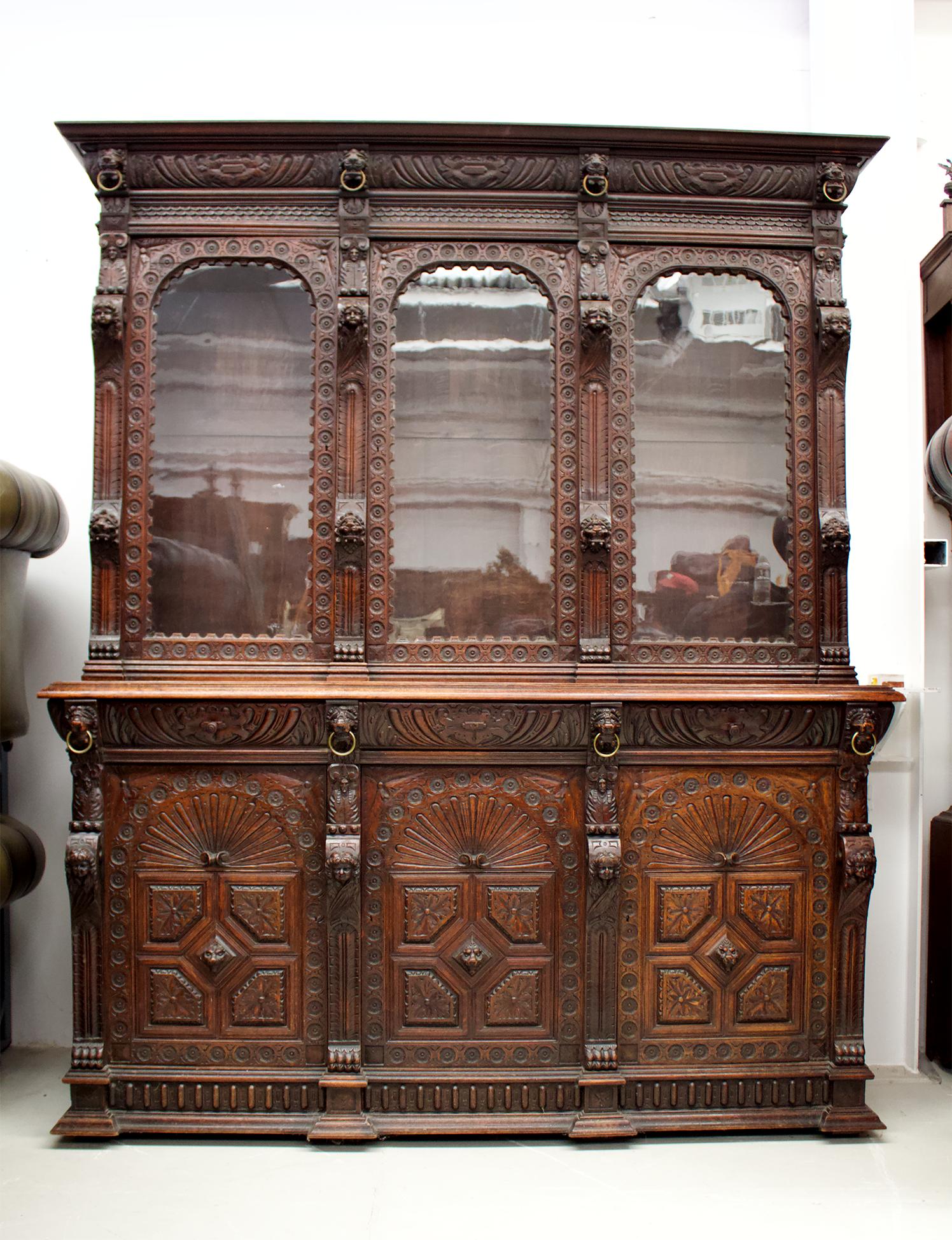 19th Century Three Door Carved Oak Bookcase (1 of 5)