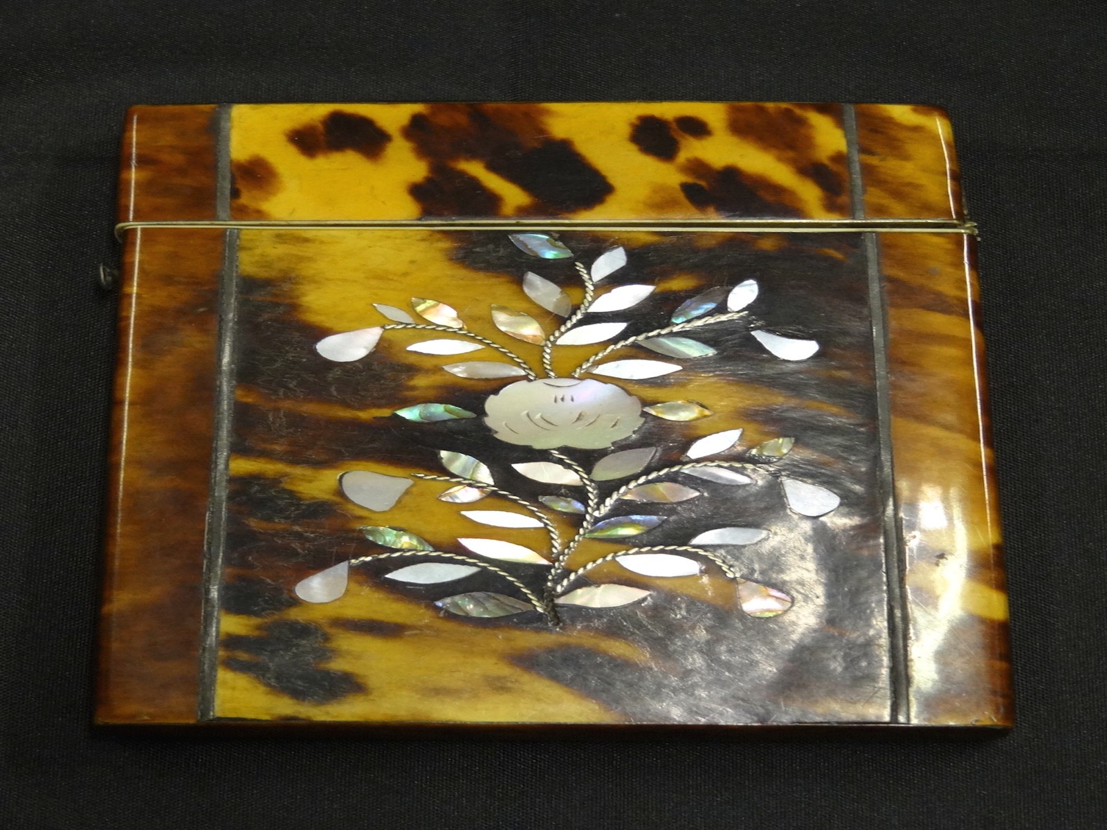 19th Century Tortoiseshell & Mother of Pearl Card Case, Inlaid Foliage Decoration, British