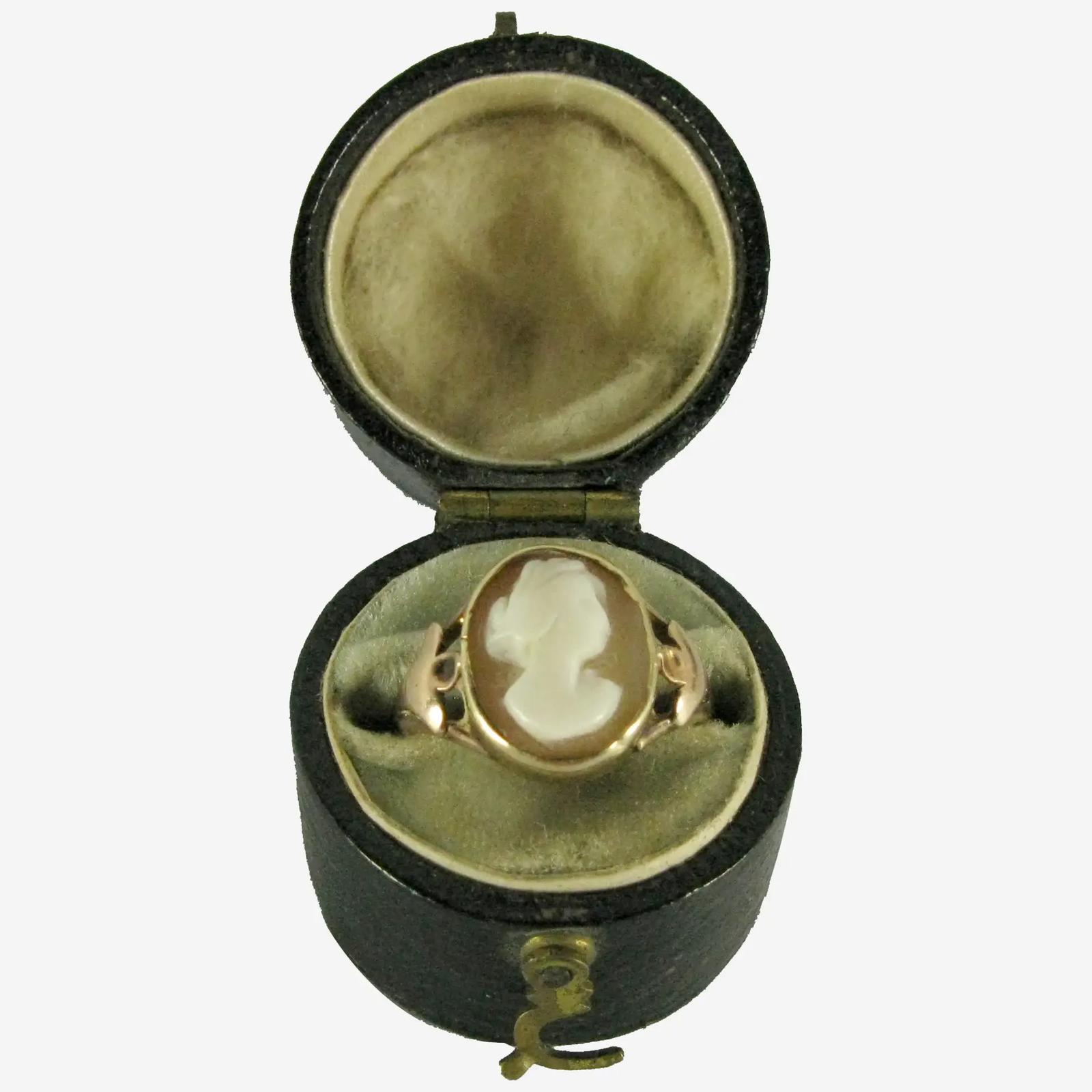 19th Century Victorian 9k Gold Shell Cameo Ring Cased