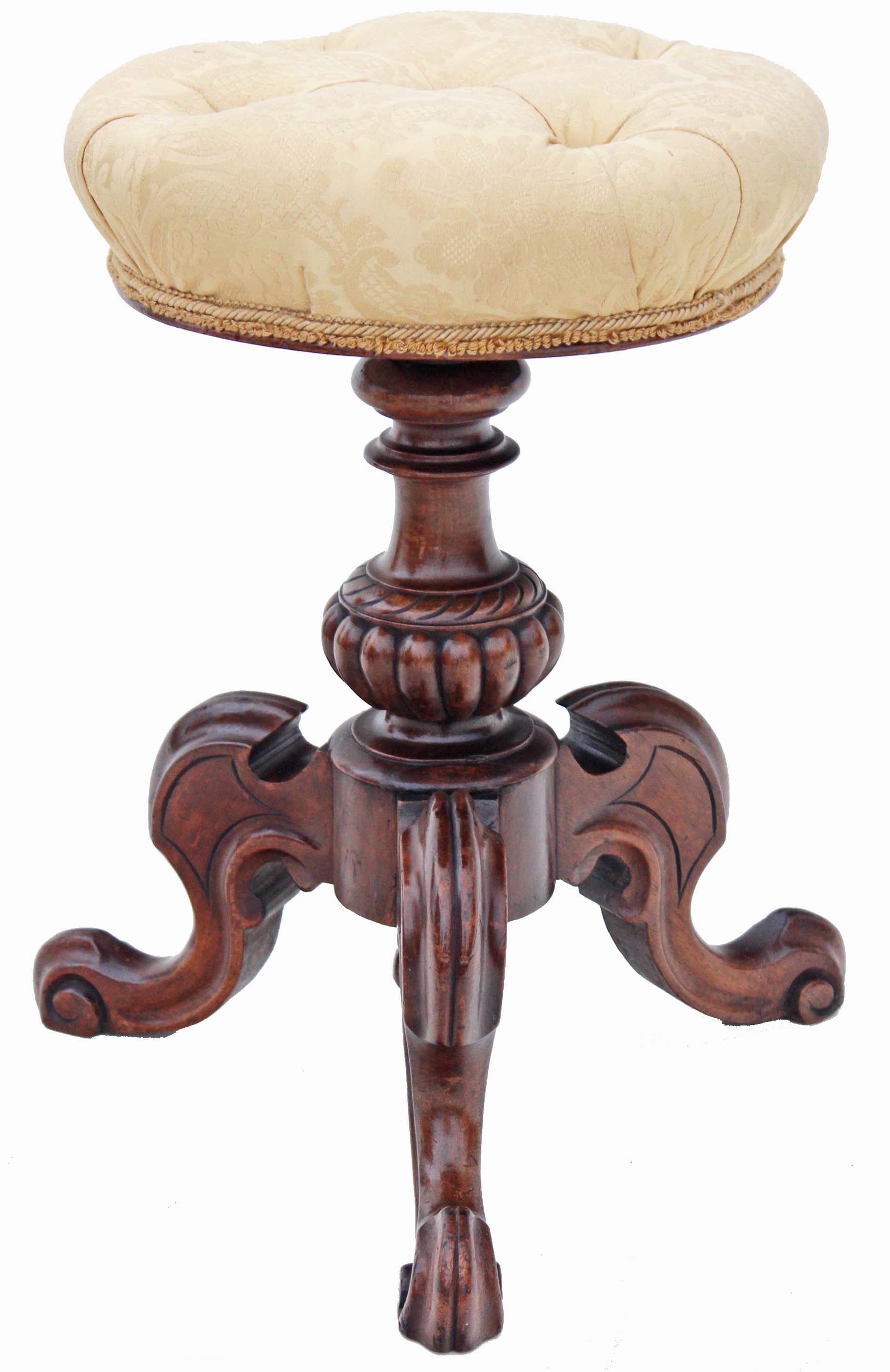 19th Century Victorian Adjustable Walnut Piano Stool / Music Stool / Dressing Table Stool